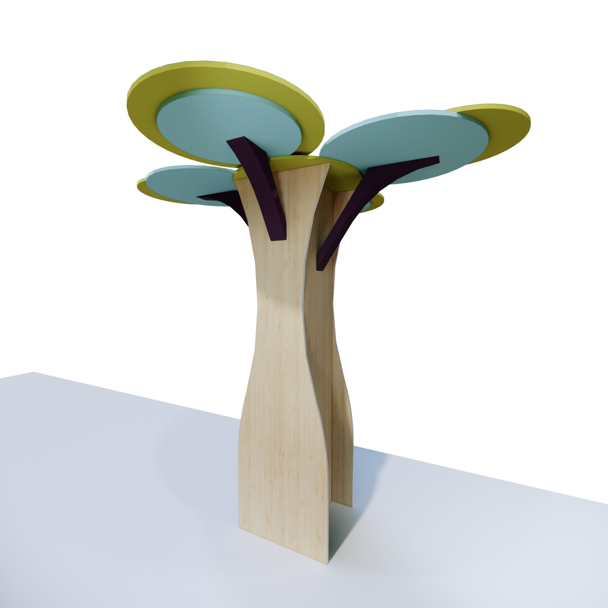 Double sided tree canopy feature with circular tree panels